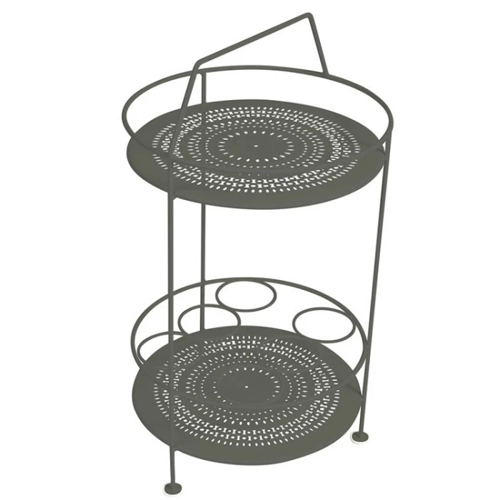 Le bar portatif sera idéal pour compléter votre mobilier de jardin Montmartre et se fondra parfaitement à votre décor. Ce petit bar s’avère très utile pour le service grâce à son porte-bouteille intégré, il vous sera possible de glisser vos bouteilles de vins ou carafes d’eau. Son double plateau en tôle acier perforée est également pratique pour disposer des objets de décoration ou condiments de cuisine. Très maniable car léger, ce bar portatif vous suivra partout.