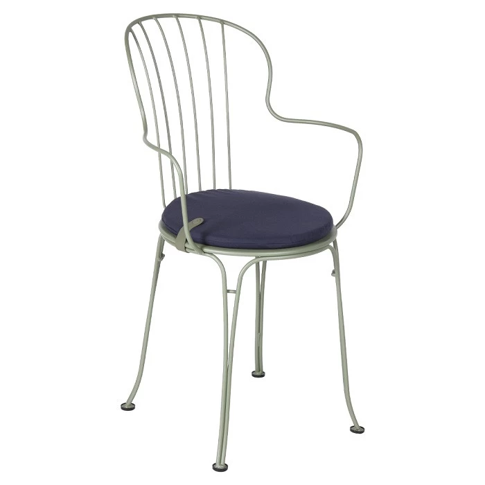 Le coussin galette pour les chaises rondes Fermob est disponible dans de nombreux coloris : Vert Safari, Bleu Nuit, Ficelle, Lie de Vin et Menthe Glaciale.